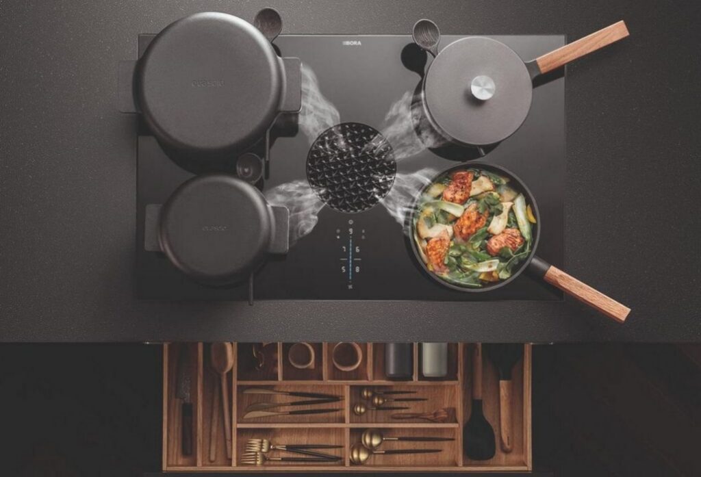 The new BORA X Pure boasts an extra-wide cooktop with a distinctive air inlet nozzle. Surface induction allows for maximum flexibility in terms of where you place your pots and pans. This highly elegant, minimalist compact system with its innovative sControl touch controls is flush-mounted, extremely quiet and extremely intuitive.