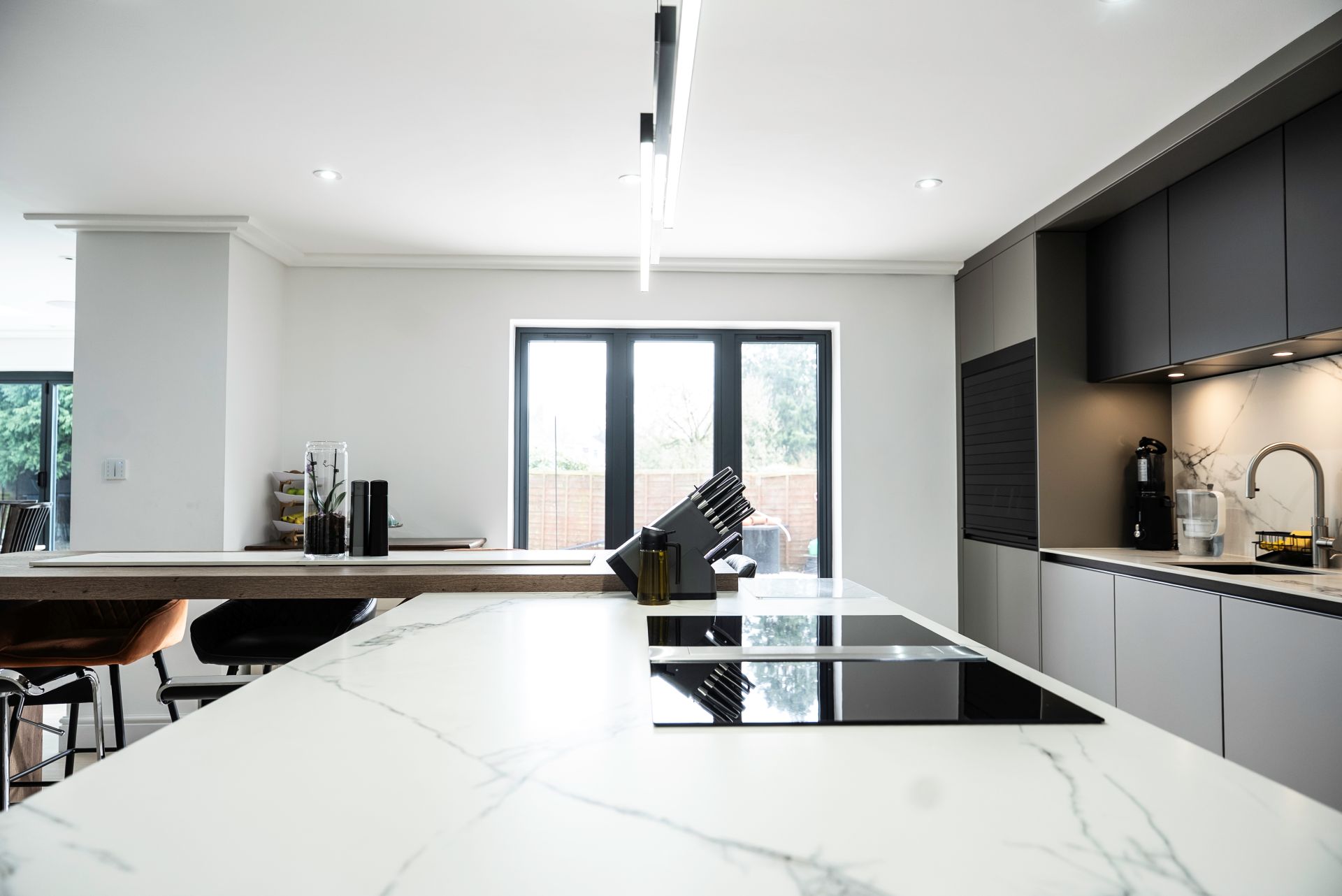 “Narinder Johal’s kitchen project was guided by a vision to create a sleek, minimalist space that offers both enduring style and everyday practicality. The result is a premium kitchen that brings together clean lines, smart features, and high-quality finishes — achieving a look that is both timeless and functional. The layout was thoughtfully designed to create a seamless flow between the kitchen, dining and living spaces, enhancing the connection between cooking, dining, and relaxing. It’s a space not just for preparing meals, but for gathering, sharing, and enjoying everyday moments together.”